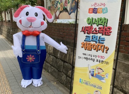 여름성경학교를 앞두고 학교앞 전도, 토순이와 함께^^