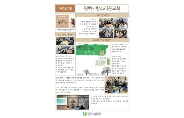 2022년 표어 "정감있는 사랑스러운 교회"할렐루야 내가 정직한 자들의 모임과회중 가운데에서 전심으로 여호와께 감사하리로다 (시111:1)